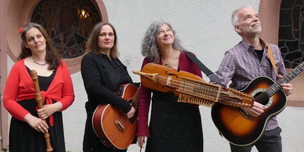 Die Bandmitglieder der Band Väsen mit Instrumenten